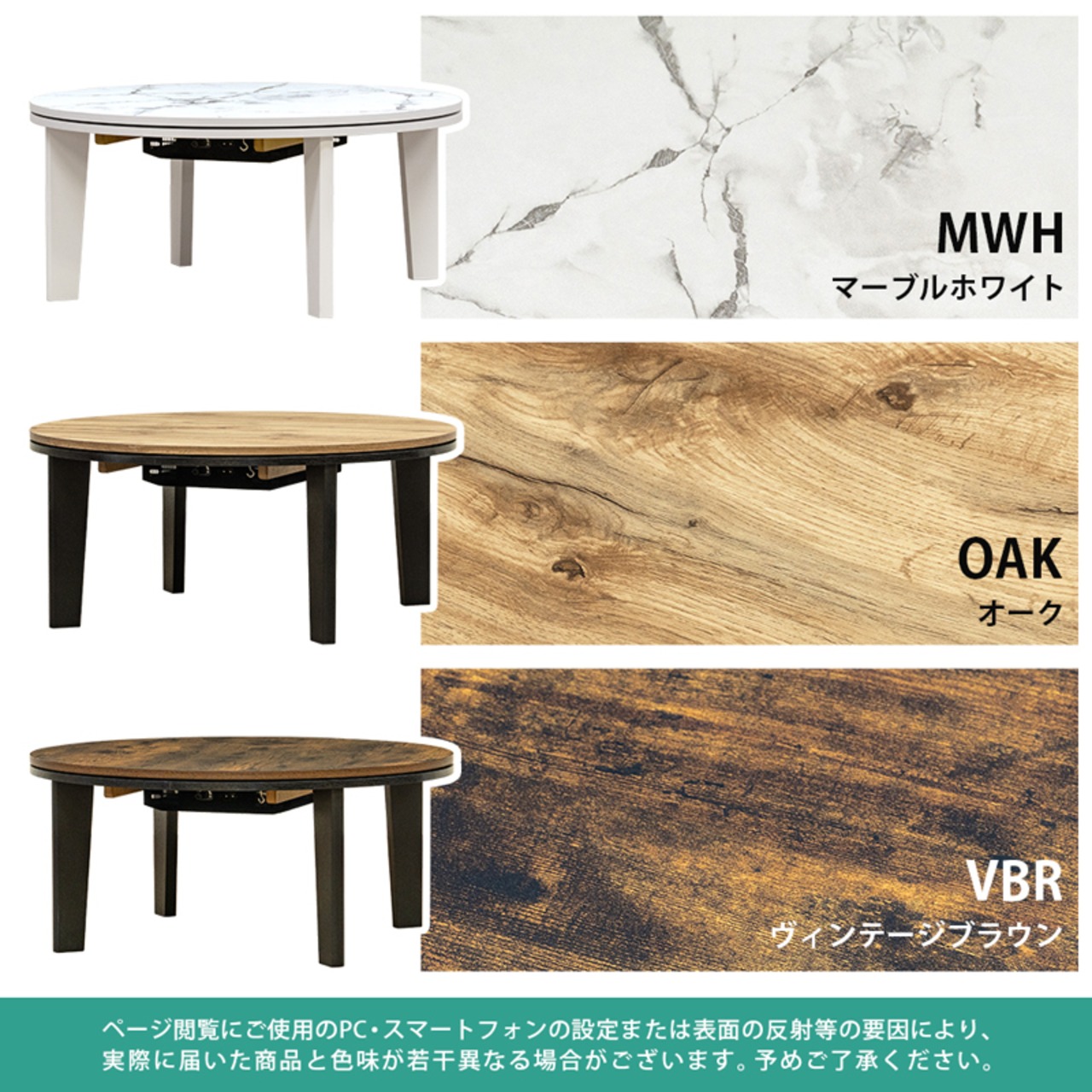 モダンオールシーズンコタツ 80cm 円形です。重厚なヴィンテージテイストの木目調天板が特徴の丸型コタツです。